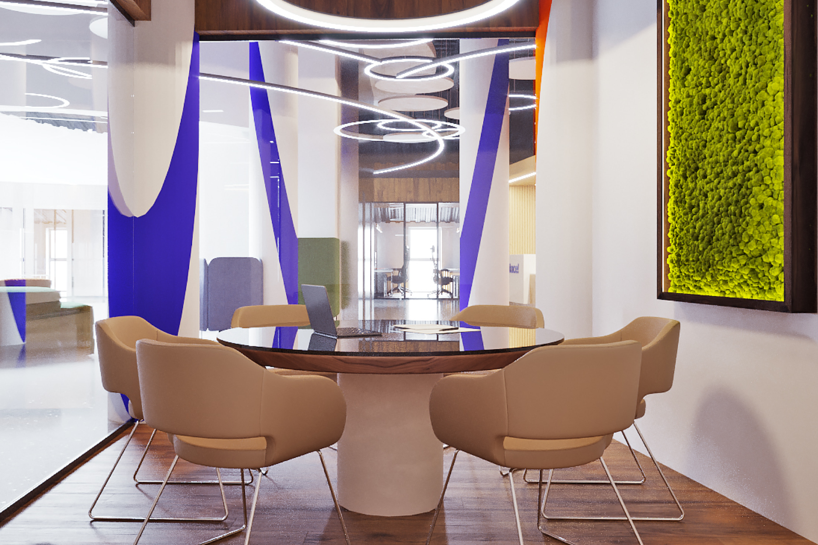 Стильные и гармонично обустроенные пространства для продуктивной работы и деловых встреч. В каждой переговорной есть умная доска-проектор, чтобы вам было удобно проводить совещания и встречи.
