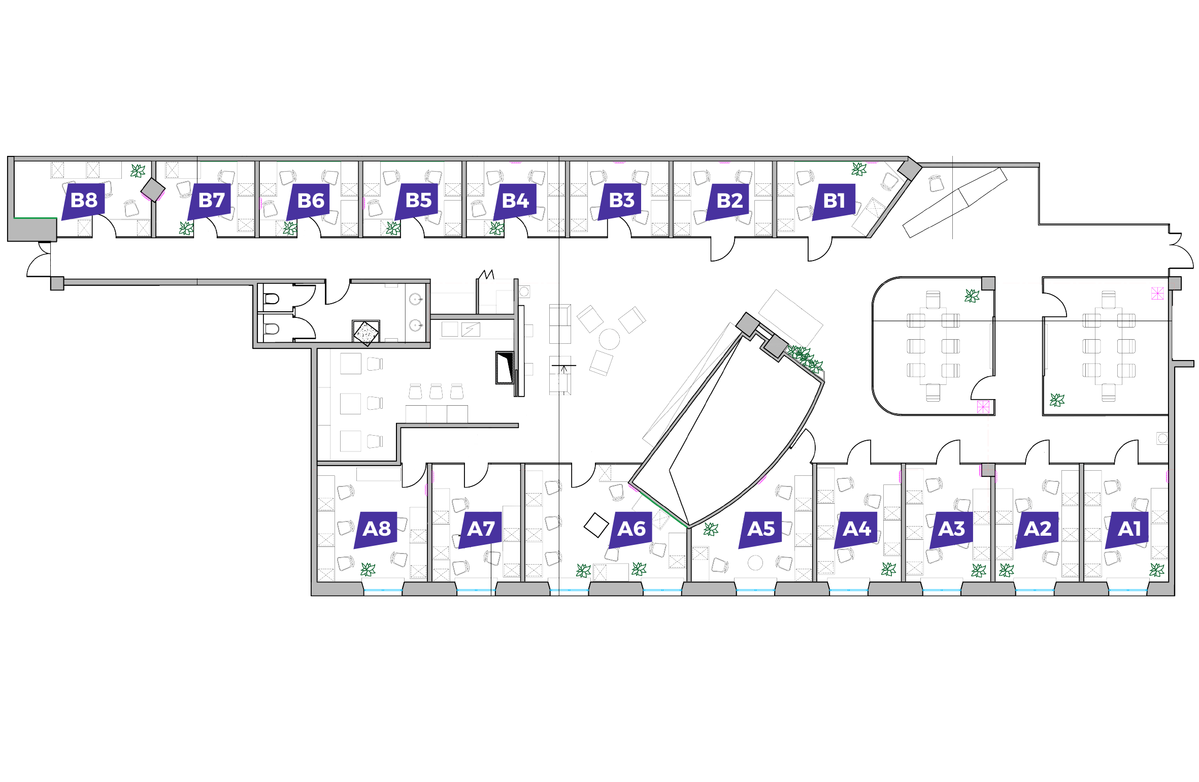 Оборудованные медиа-переговорные, пространства для отдыха, кухня со вкусным кофе и свежей выпечкой